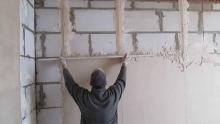 До того как на поверхность будут наноситься выравнивающие составы, со стены необходимо удалить старые отделочные покрытия и осыпающуюся штукатурку. Также придется избавиться от загрязнений, а при необходимости – еще и плесневых поражений. Если есть опасность, что в дальнейшем на стене появится грибок, нужно провести обработку антисептическим средством. Только тогда получится гарантировать, что стена и отделочные материалы сохранятся в хорошем состоянии. Последнее действие на этапе подготовки – нанесение грунтовки, которая поможет штукатурке лучше схватиться с основанием.