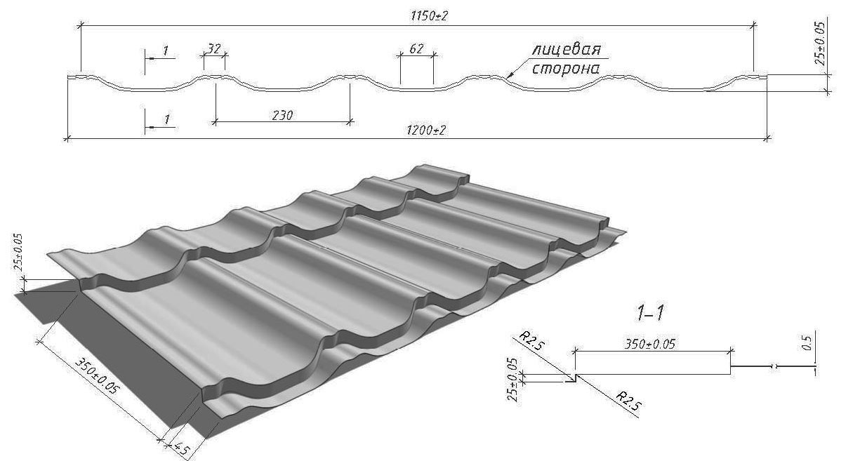 Длина волны у модели "Этерна" составляет 350 мм, у модели "Верона" 400 мм, что придает более массивный и надежный вид кровле из "Вероны".